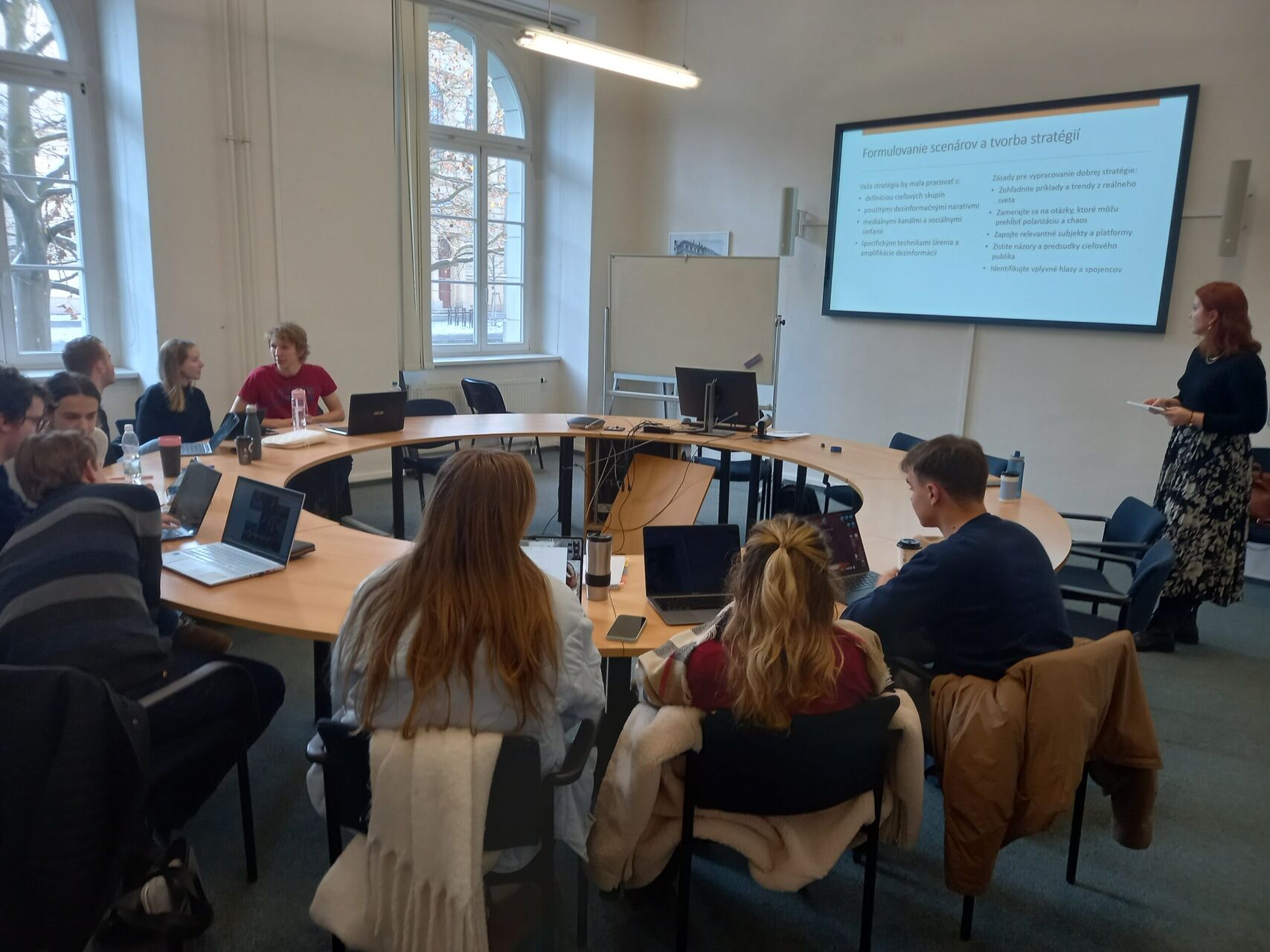Overall, 15 workshops took place during the spring and autumn semesters. In the Czech Republic, three were held at Masaryk University in Brno, two at Charles University in Prague, and one at the Summer School of Journalism in Havlíčkuv Brod. In Slovakia, four sessions occurred, including two at Comenius University in Bratislava and two at Pavol Jozef Šafárik University in Košice. Finally, in Poland, six workshops were organized: four at Warsaw University and two at Campus Polska in Olsztyn. In total, these workshops welcomed 286 unique attendees, mainly students majoring in International Relations, European Studies, Political Science, Journalism, and Media Studies. The workshops focused on disinformation, foreign malign influence, hybrid threats, and strategic communication, with a special emphasis on their impact on democratic processes such as elections. This was particularly relevant given the timing of the autumn Slovak and Polish parliamentary elections and the upcoming European Parliamentary elections. The discussions aimed to bolster the participants' resilience against real-life manipulations they might encounter during these elections.