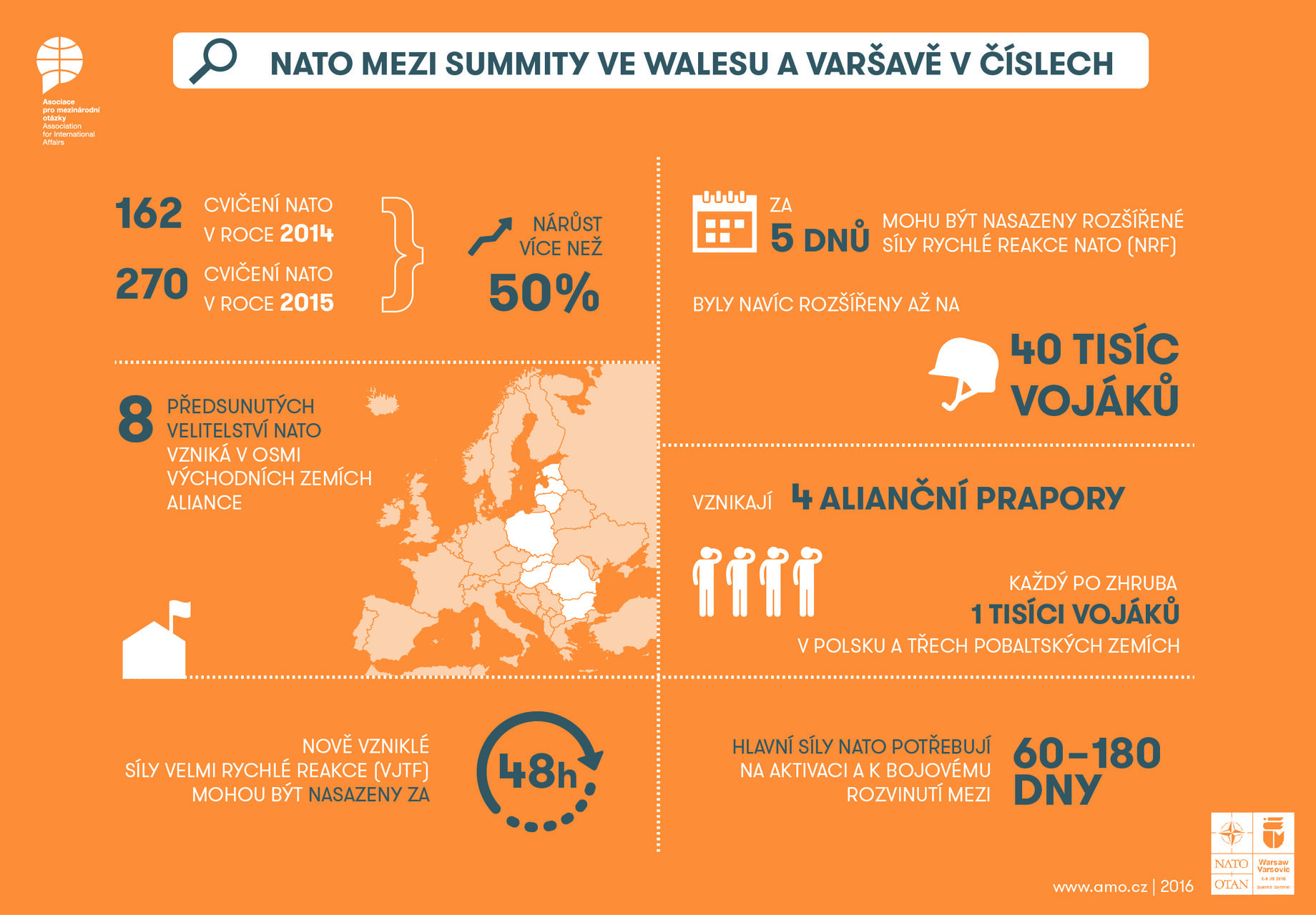 AMO připravila infografiku, která přehledně zobrazuje někateré údaje týkající se současné Severoatlantické aliance.